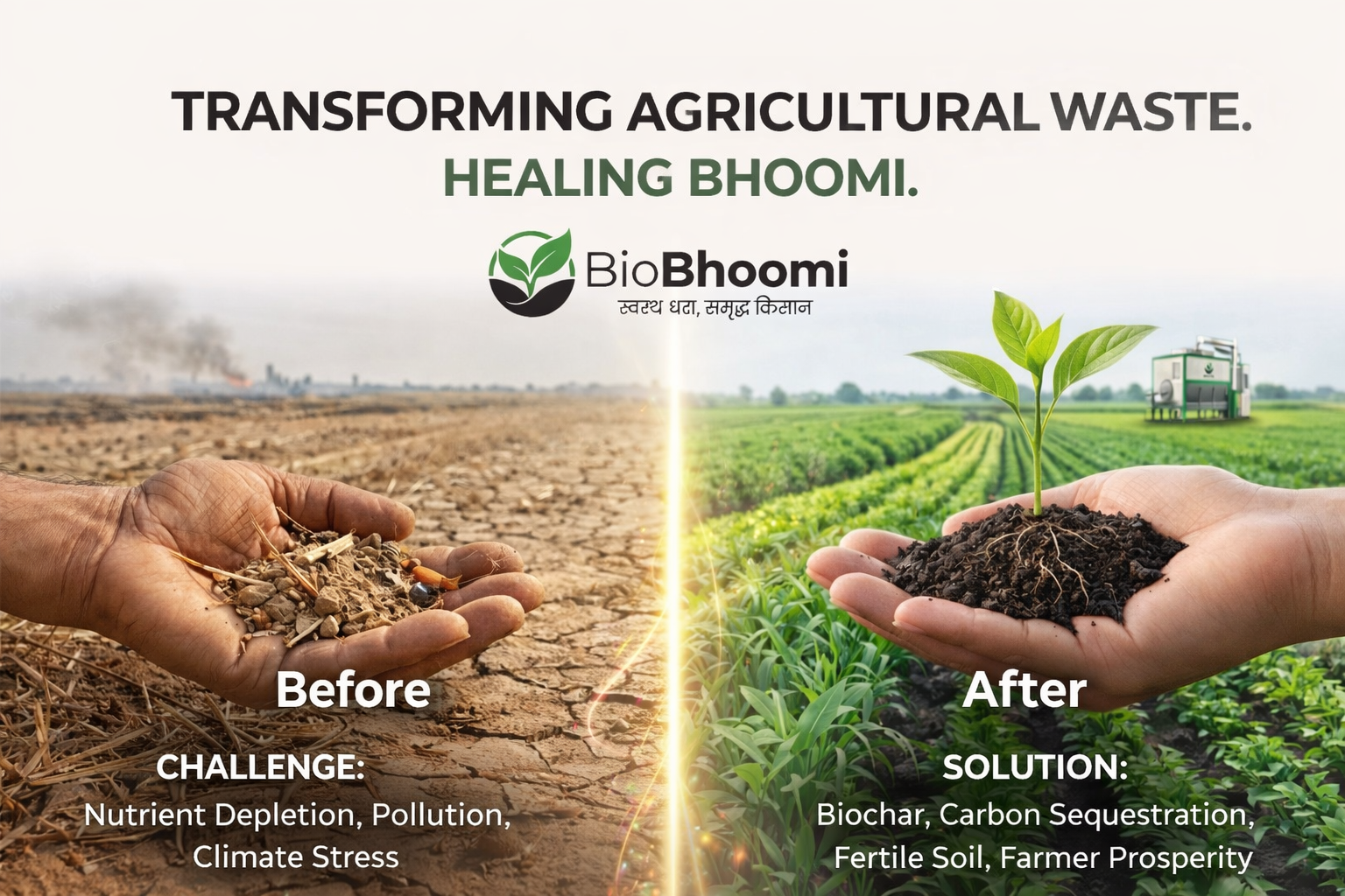 At BioBhoomi, we are turning today’s waste into tomorrow’s foundation by transforming agricultural waste into Biochar.